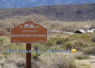 Unsere warmen Jacken wurden heute zuunterst im Koffer versorgt. Ab jetzt wird es immer wärmer. Kurzentschlossen haben wir unsere heutige Route geändert , die uns so nach Benton führte. Hier leben 13 1/2 Personen. Wir fragen uns immer noch. wer die halbe Person ist. Sehr interessant die vielen Maschinen und die Geschichte dieses Ortes. Aber wer lebt so, das fragen wir uns immer wieder. Weit und breit ist einfach nichts. Der nächste Halt war in Tonopah, wieder eine alte Minenstadt die aber 1911, 10 Jahre nach dem ersten Silberfund, geschlossen wurde. Wir besichtigten den Friedhof von all den Menschen die währen dieser 10 Jahre gestorben sind. In dieser Gegend gab es mehrere solcher lukrativen Minen.